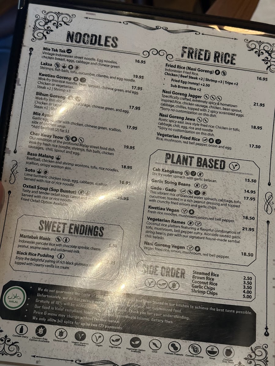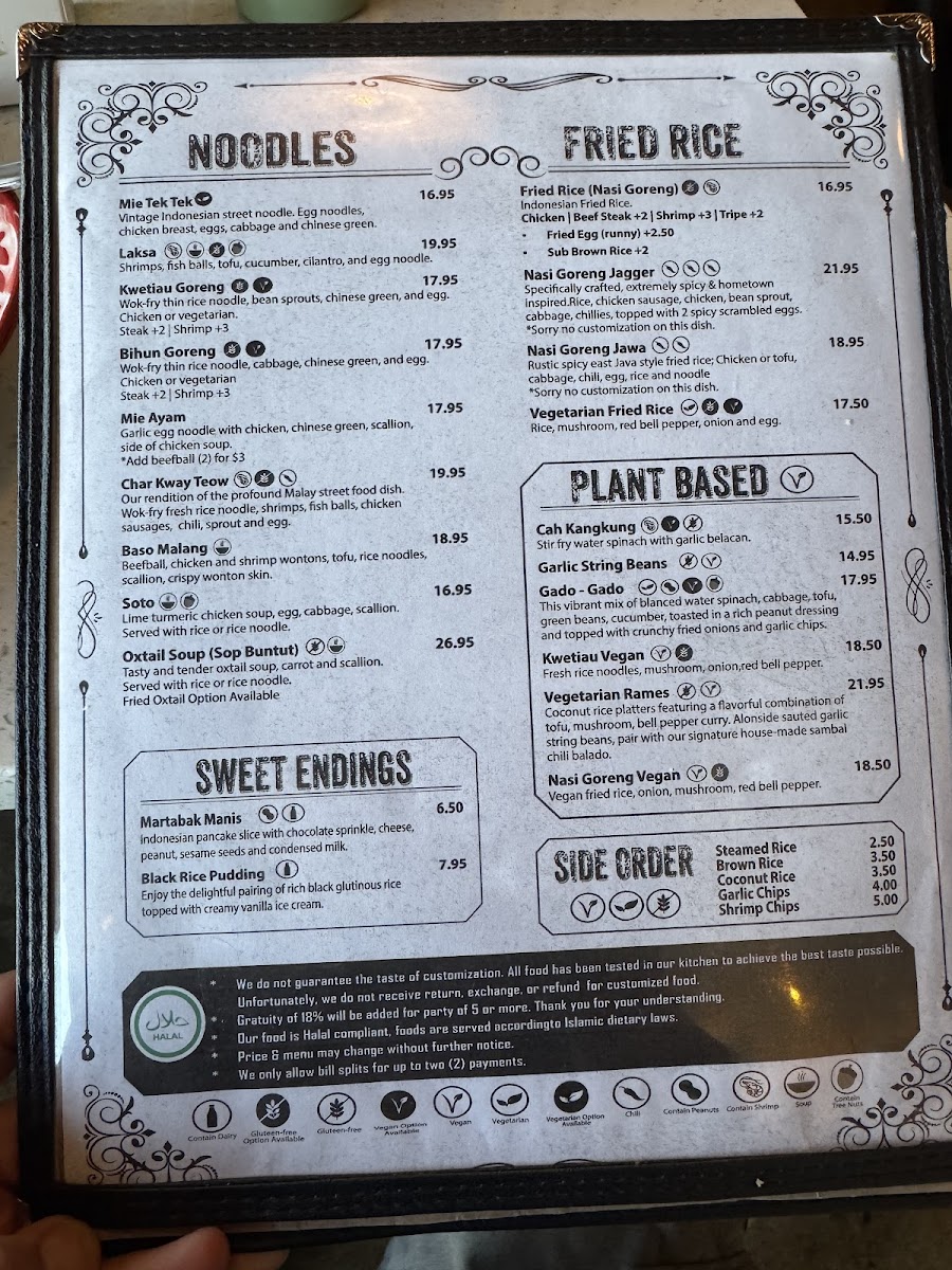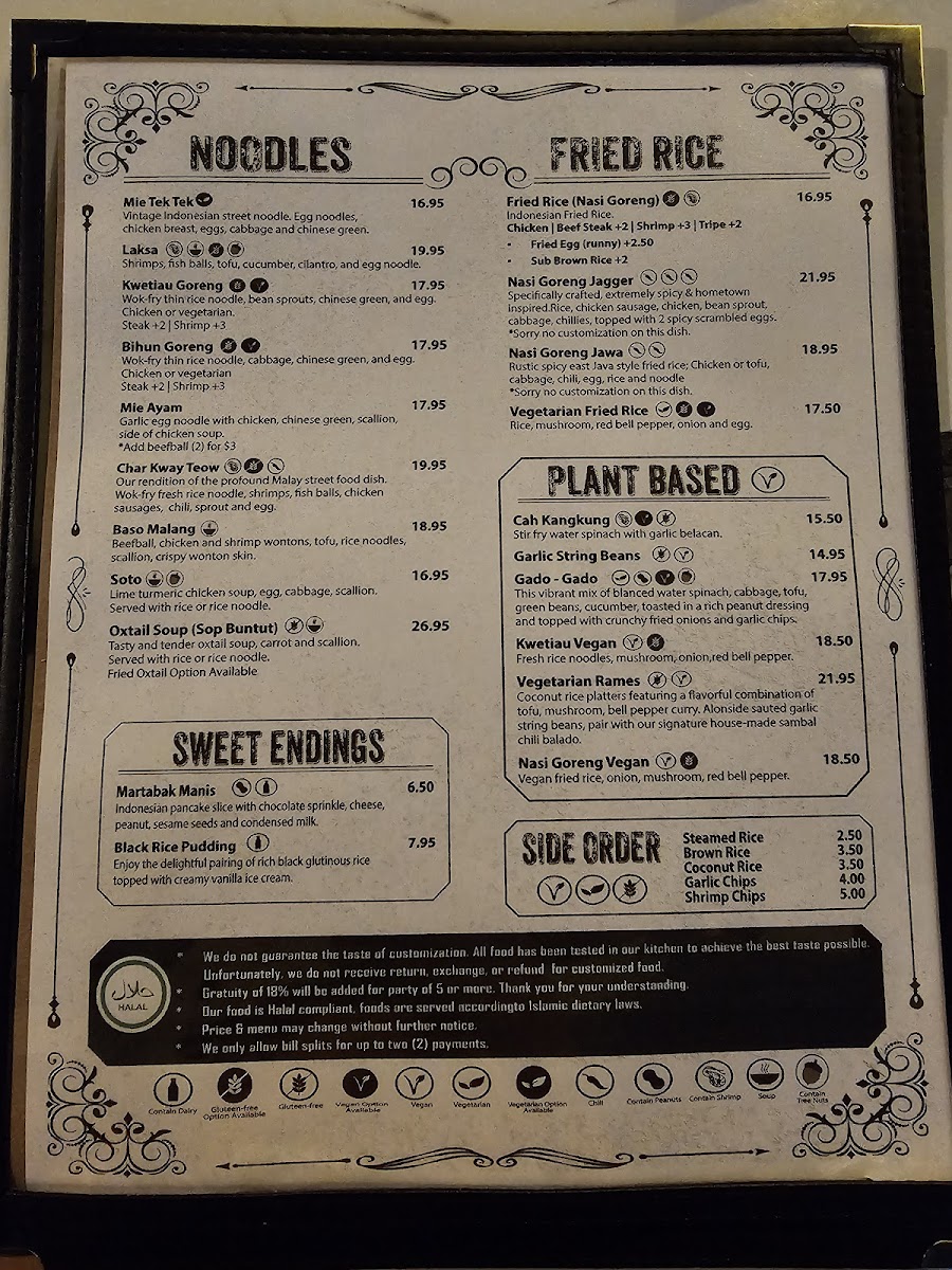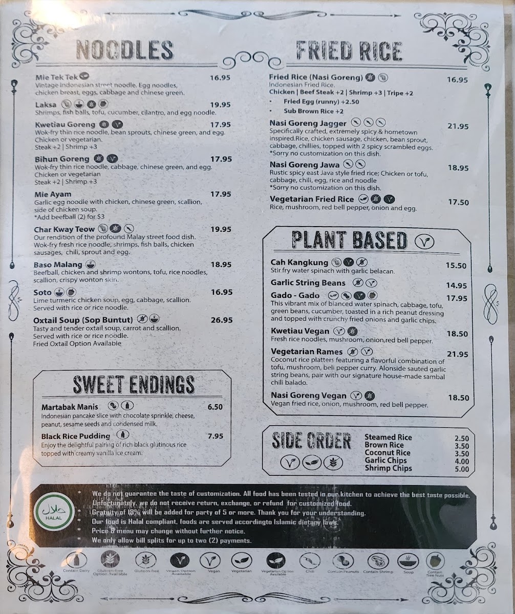 Step through the door and you'll be greeted by a bright and inviting interior that boasts a newly renovated design, effortlessly blending modern aesthetics with a touch of Indonesian warmth. The atmosphere is both casual and welcoming, perfect for enjoying a leisurely meal alone or gathering with friends and family. If you prefer some fresh air, outdoor seating is also available, making it an ideal spot for sunny Los Angeles days.